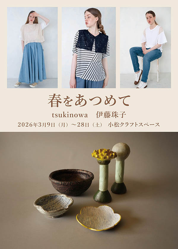 服飾ブランド・tsukinowa(ツキノワ)の新作コレクションは、ベルギーの古都・ブルージュから着想を得て、レースのシャツやデニムを中心としたボトムスを展開いたします。本展では陶芸の街・笠間で生まれ育ち、ユニークでモダンな作陶で知られる伊藤珠子さんの作品もあわせて展示いたします。
